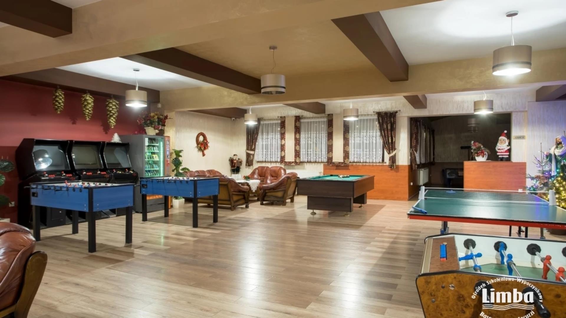 • strefę gier z cymbergajem, bilardem, piłkarzykami i tenisem stołowym,